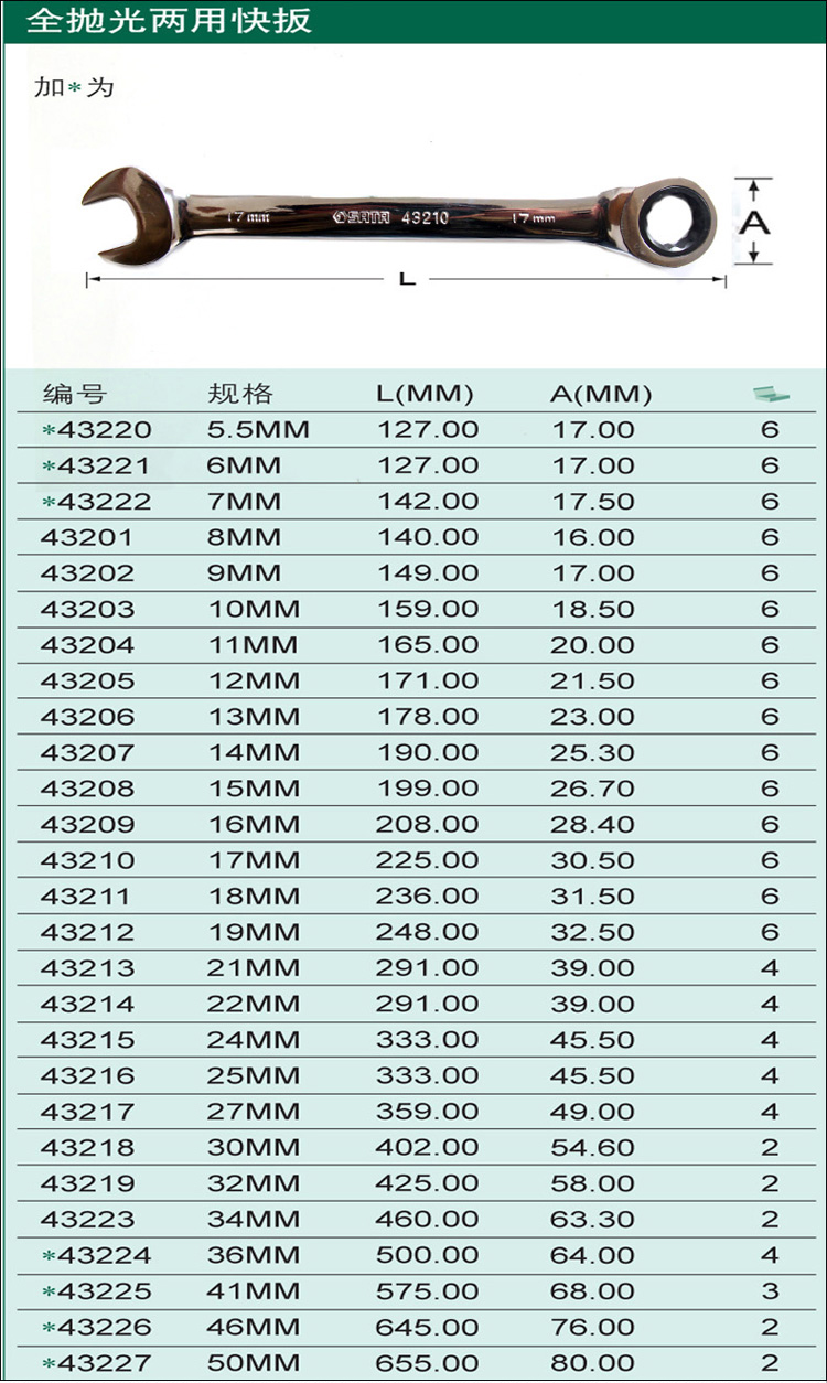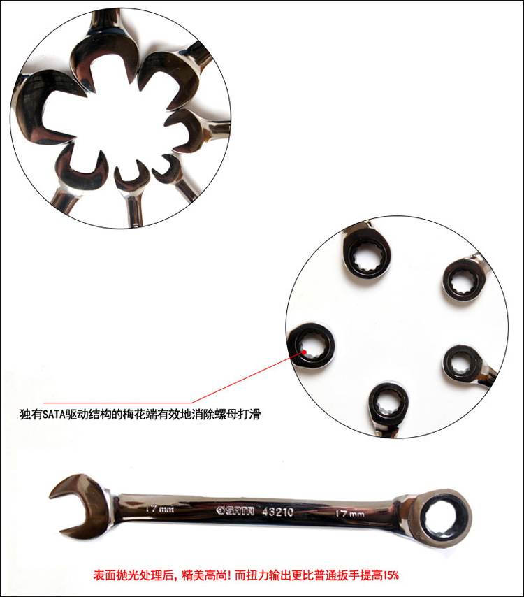 商品名称:世达工具 43206 全抛光两用扳手13mm